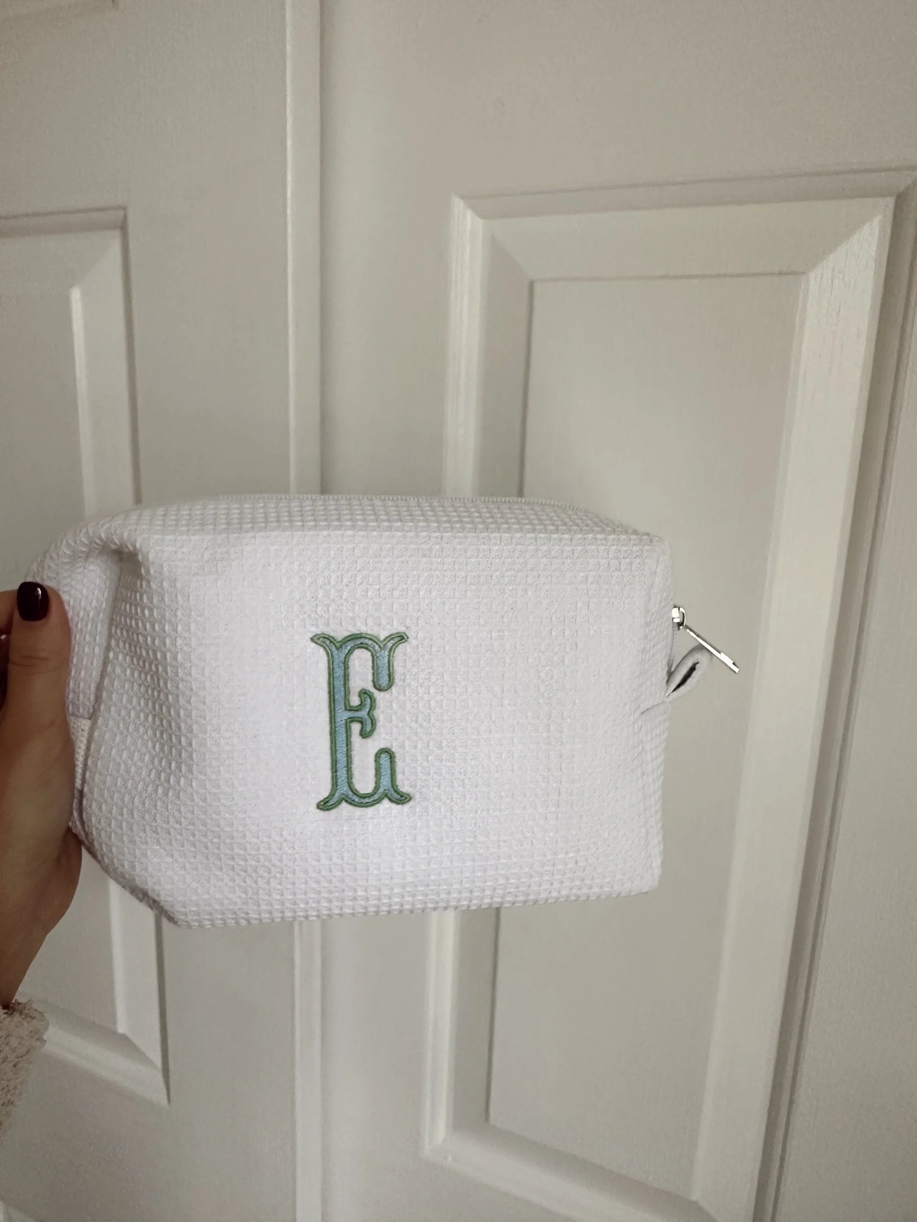 Image 1 of 1 Embroidered Single Initial Waffle Travel Bag $20.00 Cosmetic/Travel Bag - Single Initial Printed in Blue and Green thread - other thread colors available! Quantity: Add To Cart Added! Cosmetic/Travel Bag - Single Initial Printed in Blue and Green thread - other thread colors available! Reviews Reviewer Name Review Date Star Rating Description Posted on Etsy Product Show More